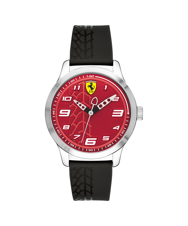 W TIME TREND znajdziecie teraz kolekcję zegarków dla młodych fanów aut przygotowaną przez markę Scuderia Ferrari – w końcu niemal każdy chłopiec uwielbia samochody! Ferrari to marka egzotycznych samochodów spod znaku czarnego konia. Włoska produkcja, styl, klasa i sportowa elegancja w jednym są dla wielu uosobieniem spełnienia marzeń i symbolem luksusu. Niemal całą gamę cech typowych dla aut Ferrari przełożono na zegarki tej linii. Dokładnie w takiej tonacji zaprojektowano także dziecięce czasomierze. Kolekcja dla chłopców to trzy modele – 0840019,  0840020, 0840021. Wszystkie posiadają charakterystyczne nawiązania do świata aut. Jednym z nich jest odcisk opony samochodowej wyżłobionej na całej długości pasków oraz graficznie przedstawiony na tarczy. W zegarkach dedykowanych dzieciom ważne jest, aby cyferblat był przejrzysty – posiadał duże czytelne oznaczenia godzin. Niemniej i tutaj włoscy projektanci pozwolili sobie na ciekawe odniesienie do wyścigowych samochodów. Cyfry różnej wielkości o typowej dla marki czcionce nawiązują wprost do prędkościomierza Ferrari, a w miejscu '12' umieszczono logo – herb czarnego konia na żółtym tle. Biorąc pod uwagę, że czasomierze dedykowane są młodszej grupie, koperty mają optymalną średnicę – 38mm. Kolekcja dostępna jest w trzech wariantach kolorystycznych. Wedle preferencji można wybrać model  0840019 w granacie, zegarek  0840020 o czerwonej tarczy i czarnym pasku oraz  0840021 z czerwonym paskiem i czarną kopertą. Zapraszamy do salonu TIME TREND.
